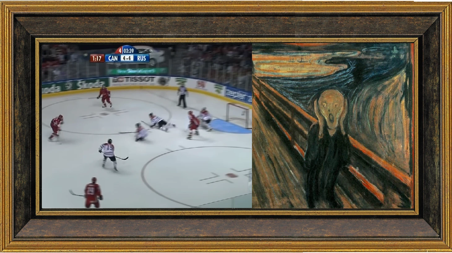 Хоккей и живопись заставляют нас навсегда запомнить один кадр из жизни, один момент времени. Моменты могут быть разными: смешными, торжественными, и даже страшными.
