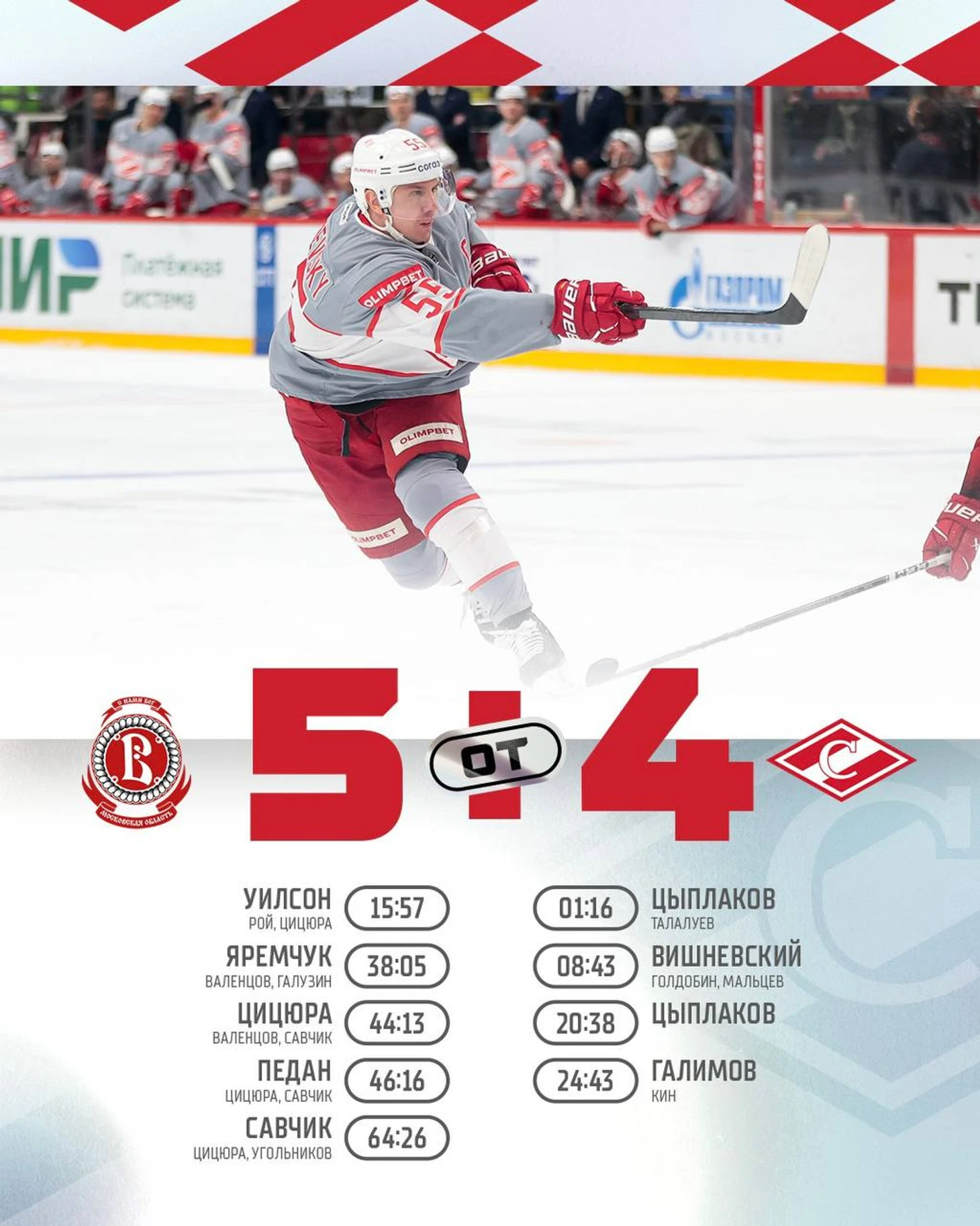 «Витязь» отыгрался с 1:4 в матче со «Спартаком» и вырвал победу в овертайме