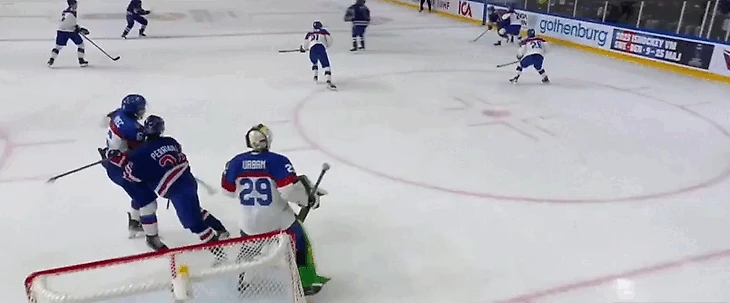 Например, вот такую шайбу с нулевого угла умудрился пустить голкипер чехов Майкл Грабал.