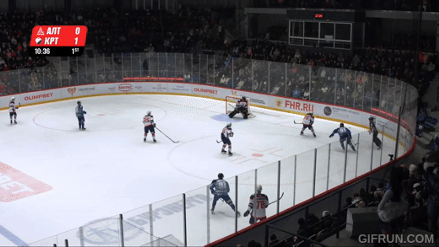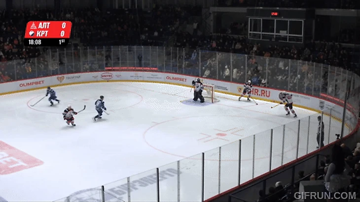 Игроки «Динамо-Алтай» уверенно чувствовали себя в зоне атаки постоянно нагружая центральный пятак, откуда была забита первая шайба. Такая возможность у них была из-за пассивной игры саратовцев в обороне, когда те располагались по схеме box+1.