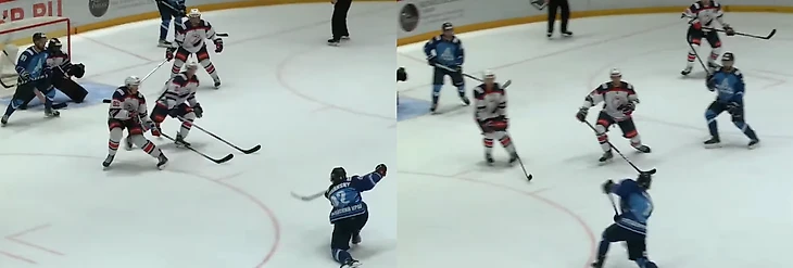 Сами же гости при выходе из своей зоны использовали выбросы и длинные передачи, после которых чаще теряли шайбу. Единственное, что работало это сольные выходы крайних нападающих вдоль борта, которым хватало скорости, для того чтобы проходить защитников.