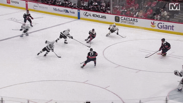 А вот уже по ходу игры Спенсеру Карбери пришлось вносить изменения: усадил Евгения Кузнецова на скамейку, а Овечкина перевел к Строуму и Пачиоретти. Эта троица и сравняла счет – Макс как раз устроил эту ситуацию 2-в-0, набрав свое первое очко в лиге с 11 января 2023-го (и первую передачу с апреля 2022-го!). Он дважды подряд рвал ахилл.