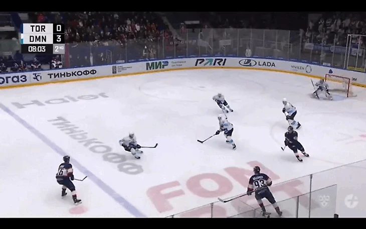 В сегодняшнем матче с московским «Динамо» интригу окончательно убила четвёртая шайба, и мы вновь не видим правильной игры по местам в зоне защиты. Сизов не пытается клюшкой помешать сделать Пыленкову прострельную передачу, а Ларионов-младший неспешно катит за Пакеттом и лишь наблюдает, как он забрасывает очередную шайбу в ворота его команды.