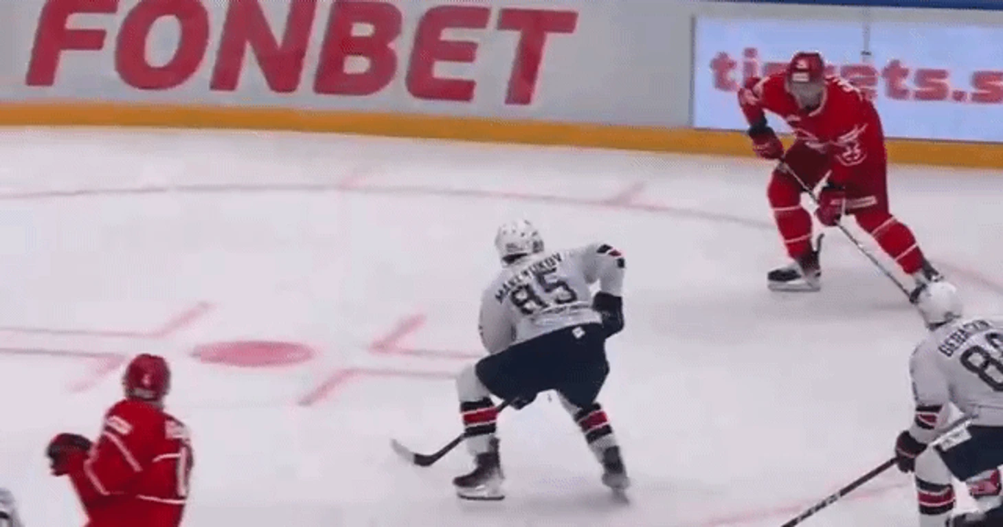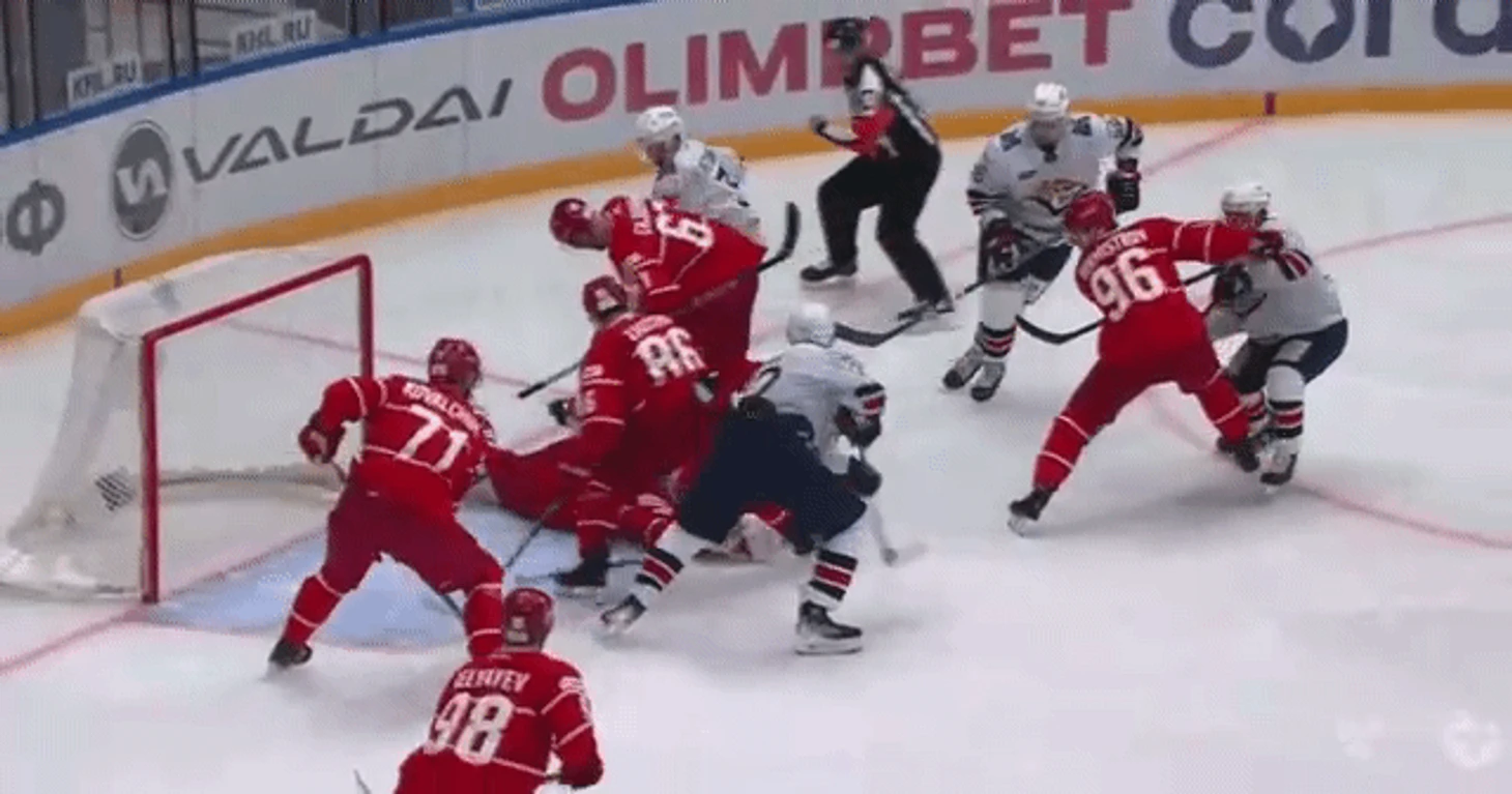Очевидный пример – первый гол Данилы Юрова. Ковальчук был на пятаке и не разобрался в моменте. Пока два других игрока «Спартака» сдерживали Михайлиса, Данила из-под него в касание переправил шайбу и забил.