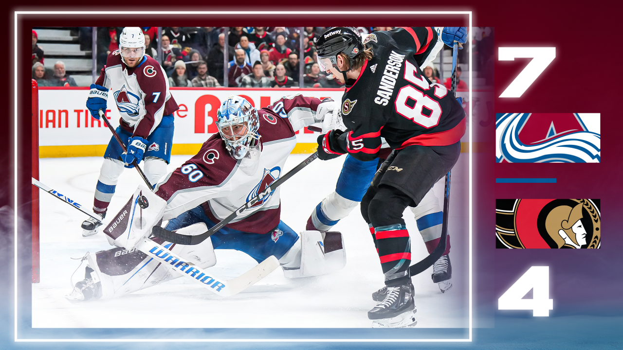 «Оттава Сенаторз»-«Колорадо Эвеланш» 4:7. Гости в последнем периоде забросили 4 шайбы. Самуэль Жирар отдал 3 результативные передачи, Микко Рантанен забросил 2 шайбы, Лайам О’Коннор, Майлз Вуд, Джонатан Тэйвз и Сэм Малински набрали по 2 очка (1+1), Натан МакКиннон отдал 2 результативные передачи, Юстус Аннунен отразил 36 бросков. У хозяев Брэди Ткачук и Клод Жиру отдали по 3 результативные передачи, Ридли Крейг забросил 2 шайбы, Джейк Сандерсон набрал2 очка (1+1).