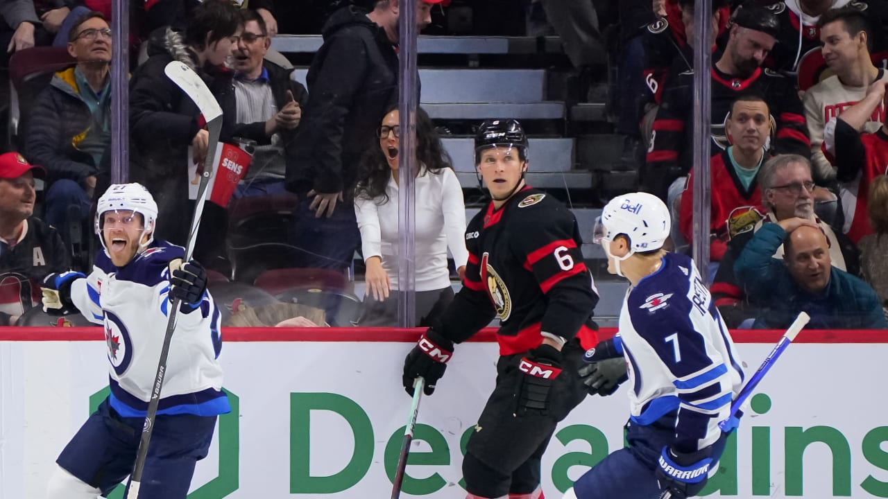 "Оттава Сенаторз"-"Виннипег Джетс" 1:2 (ОТ). Николай Элерс в овертайме принёс победу гостям. Владислав Наместников отдал результативную передачу, Коннор Хеллебайк отразил 34 броска. У хозяев Владимир Тарасенко отдал результативную передачу. В первом периоде Брэди Ткачук подрался с Бренденом Диллоном.