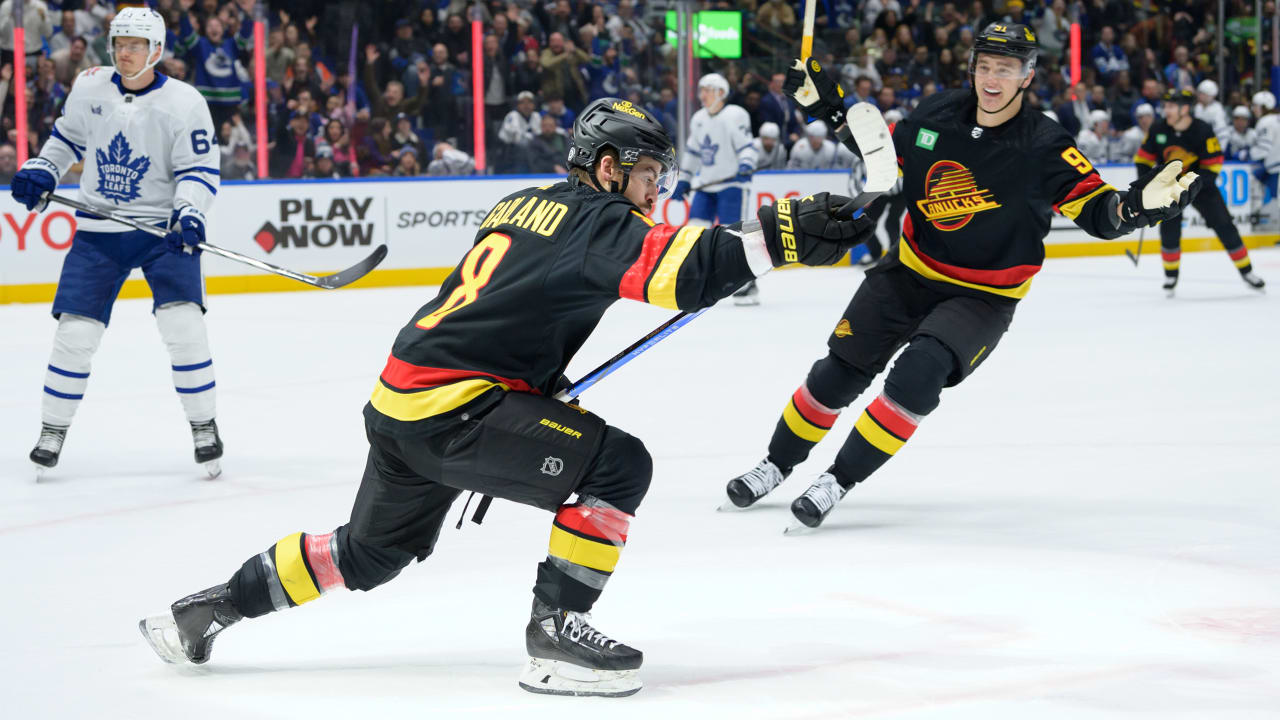 "Ванкувер Кэнакс"-"Торонто Мэйпл Лифс" 6:4. Хозяева в первом периоде забросили 3 шайбы. Конор Гарланд набрал 3 очка (2+1), Куинн Хьюз отдал 3 результативные передачи, Нильс Хогландер забросил 2 шайбы, Джей-Ти Миллер и Элиас Петтерссон набрали по 2 очка (1+1), Теодор Блюгер отдал 2 результативные передачи, Тэтчер Демко отразил 42 броска. У гостей Вильям Нюландер забросил 2 шайбы, Митчелл Марнер набрал 2 очка (1+1), Марк Райлли отдал 2 результативные передачи.