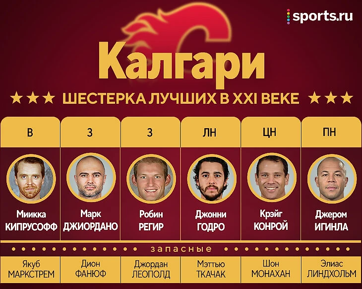 Во втором составе – три лучших (после Годро) форварда позднего «Калгари» (4-6 места по очкам в XXI веке), Леополд как участник финала-2004 и Фанюф, в начале карьеры обещавший вырасти в подобие Пронгера (потом что-то пошло не так, но это уже не в «Калгари»).