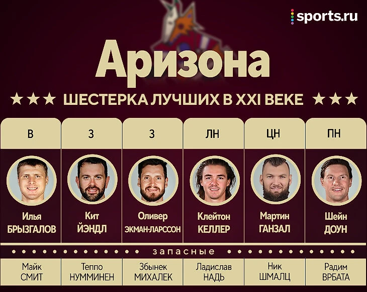 «Койоты» – настолько нечастые гости в плей-офф, что можно и не вспомнить, что однажды они дошли до финала конференции в 2012-м. И, конечно, лидеры той команды в первом или втором составе присутствуют. Но глобально это чуть ли не самый слабый состав в нашей подборке.