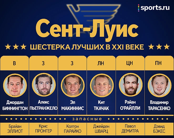 Шварц ушел в запас, рядом с ним – словак Демитра, который именно в «Блюз» провел свои пиковые сезоны (хотя часть из них пришлась еще на 90-е), и отличный универсал Дэвид Бэкес, капитан команды в 2010-х. Кроме Шенна, не хватило места Стеену, Оши, Перрону, Макдоналду… Всех жалко, но мест только шесть.