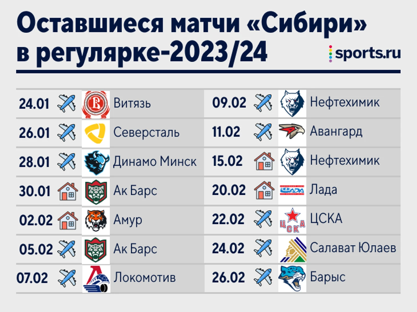 С учетом матча против «Амура» и двух – с «Нефтехимиком» кажется, что никакой катастрофы не происходит – очки можно взять в играх с прямыми конкурентами. Вот только они буквально выгрызают очки (Хабаровск хоть и проигрывает, но старается делать это не в основное время), а «Сибирь» – на расслабоне. И пока совершенно неясно, что же может ее мотивировать.