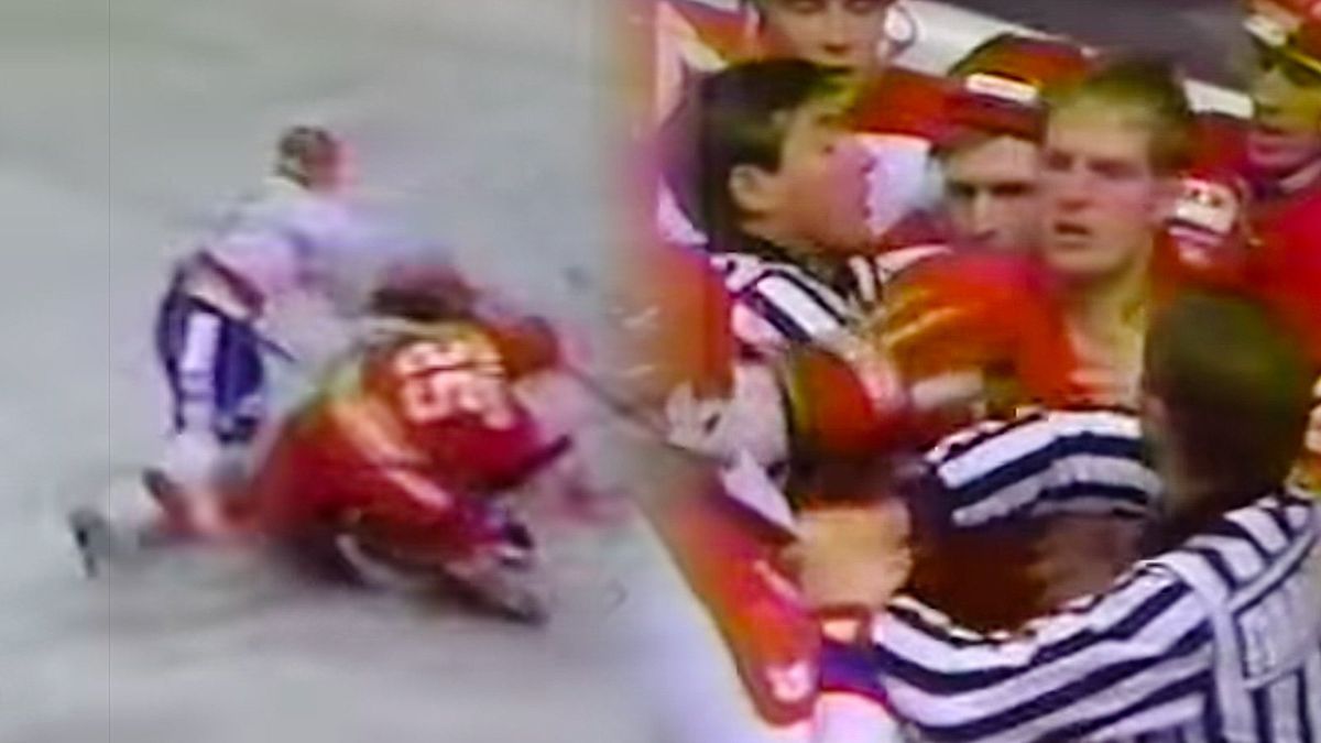 Но главным матчем турне — и для всех это было очевидно — должна была стать заруба лучшего клуба Северной Америке с самой титулованной командой Советского союза. Матч ЦСКА — «Калгари» собрал на трибунах дворца спорта «Лужники» 12 000 зрителей и оправдал все ожидания. С первых минут на льду стало максимально жарко — один из армейцев, которые у себя на родине на протяжении десятилетий были настоящими хоккейными богами, жестко встретил будущую легенду НХЛ Гэри Робертса, в ответ Колин Петтерсон зарядил локтем в голову Андрею Коваленко.