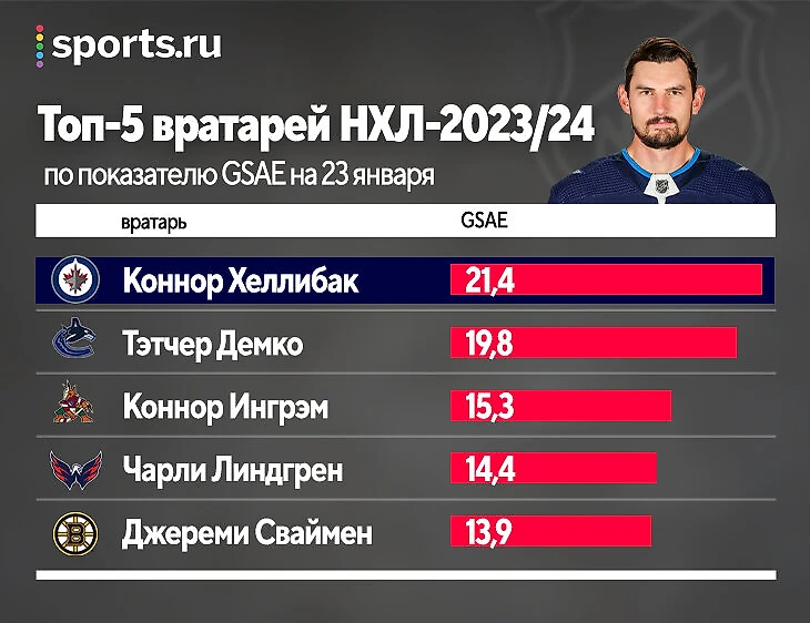 Коннор уже давно считается элитным вратарем НХЛ, но у него были разные периоды. Хотя текущий несомненно удается – и в рамках новой системы «Джетс» (в 2022-м Боунесс перевел команду на чисто зонный принцип защиты) чувствует себя превосходно.