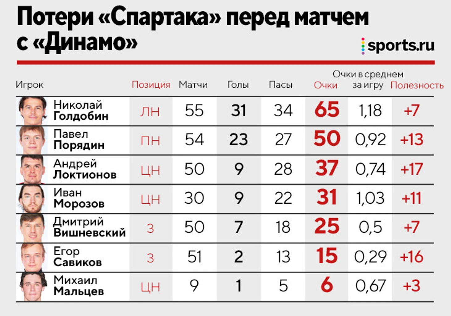 Но стоит признать, что Максим Цыплаков оказался в первом звене не от хорошей жизни – у «Спартака» и так был полный лазарет (и отдельная беда с центрфорвардами), а перед матчем с «Динамо» выяснилось, что по команде ходит вирус – и Голдобин с Порядиным не сыграют.