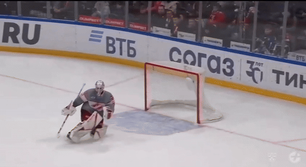 ● на 6-й минуте при игре «Спартака» в меньшинстве обокрал Рашевского, убрал шайбу под себя, чуть сместился в центр – и вывел команду вперед;
