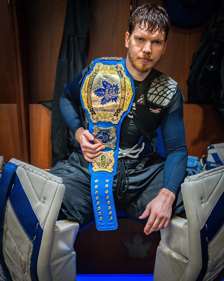 А в раздевалке он пытался отдать переходящий пояс (награду лучшему игроку матча в «Лифс») Мэттьюсу, но тот вернул его Самсонову.