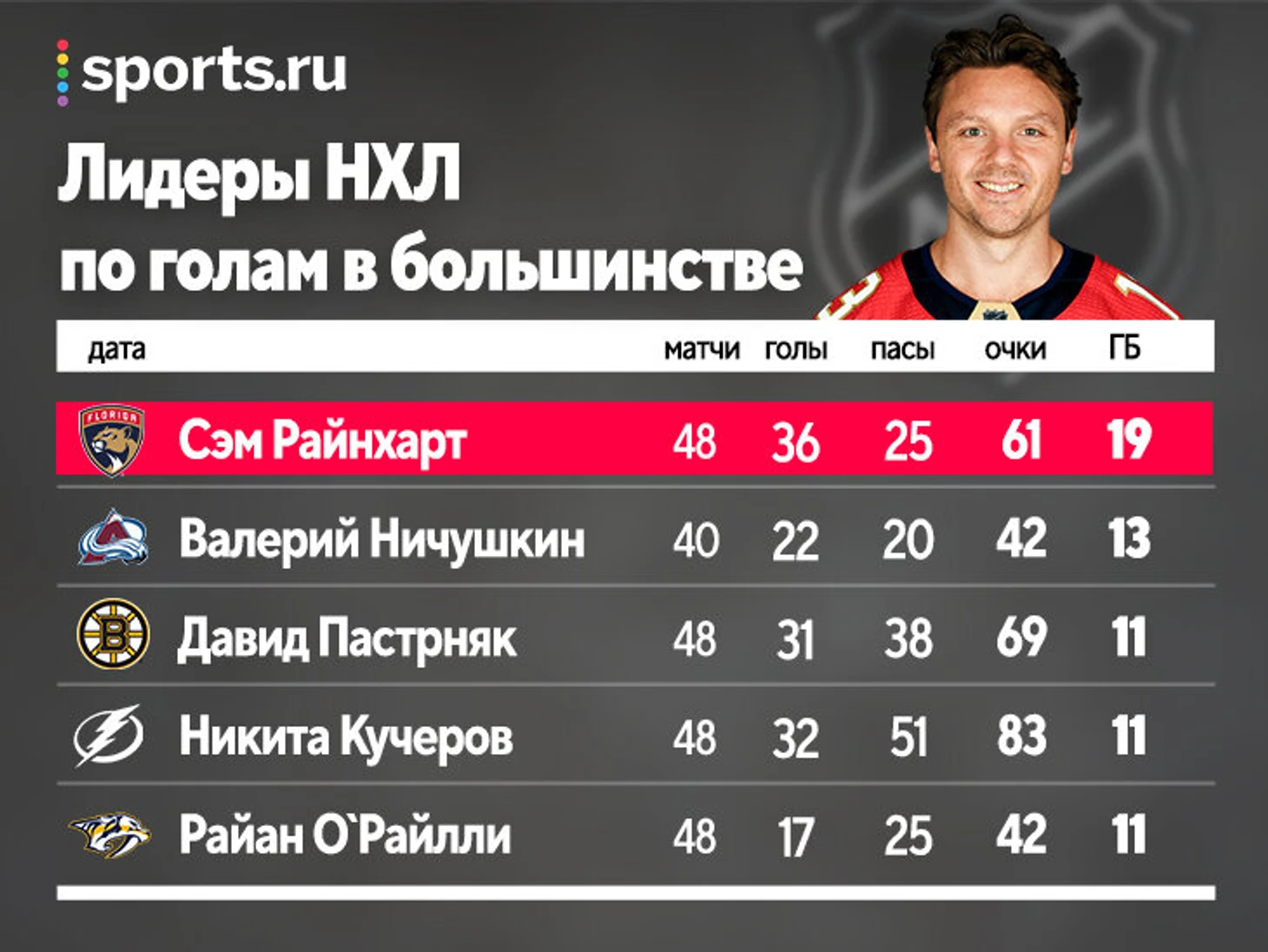 Обе шайбы в пятницу «Флорида» забросила в большинстве, закончив с 66% реализации. Удивительно, что только одна из них на счету Сэма Райнхарта – лучшего игрока лиги по голам в большинстве. В ворота «Питтсбурга» он забросил уже 19-й.