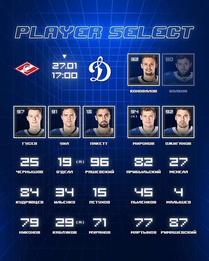 🏒 Состав на домашнее дерби против «Динамо»