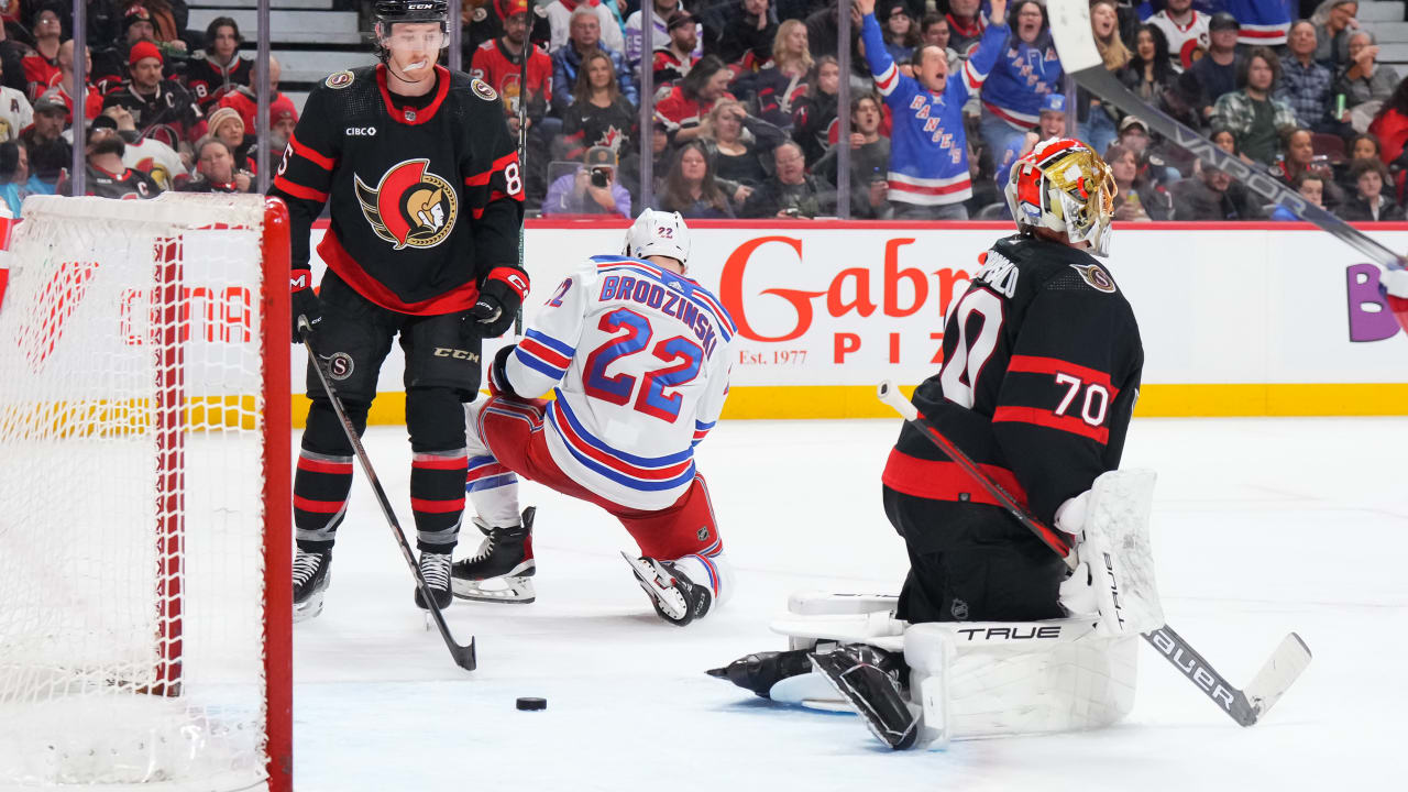 "Оттава Сенаторз"-"Нью-Йорк Рейнджерс" 2:7. Гости во втором периоде забросили 5 шайб. Артемий Панарин набрал 3 очка (1+2), Алекс Лафренье, Крис Крайдер, Джонни Бродзински и Зак Джонс набрали по 2 очка (1+1), Мика Зибанежад отдал 2 результативные передачи, Джонатан Куик отразил 29 бросков. В первом периоде Марк Кастелич подрался с Баркли Гудроу, во втором периоде Брэди Ткачук подрался с Коннором Маки.