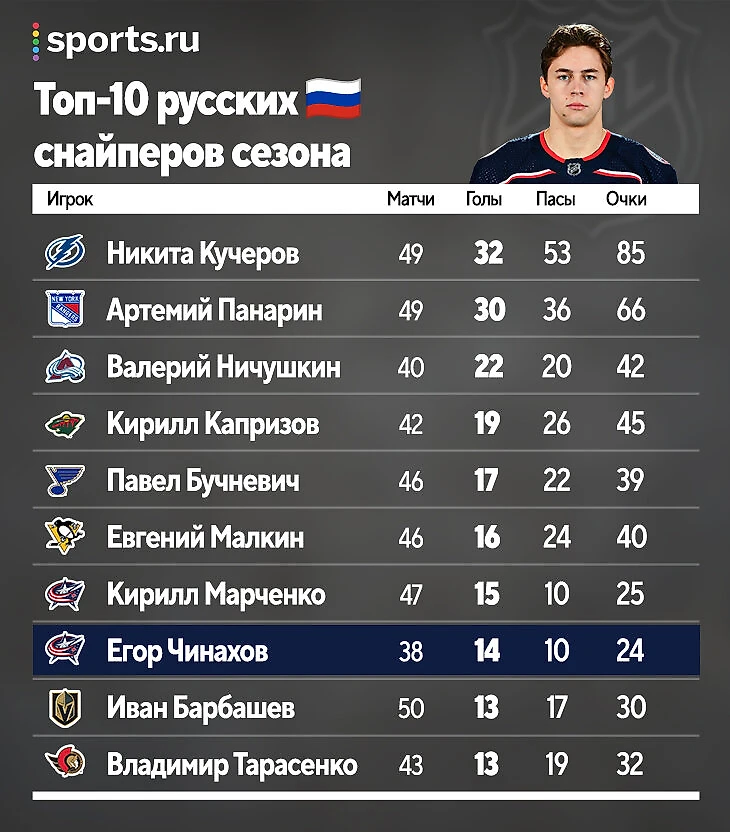 Благодаря дублю Егор резко ворвался в десятку русских снайперов этого сезона – Барбашев и Тарасенко уже позади, а до топ-5 всего три шайбы.