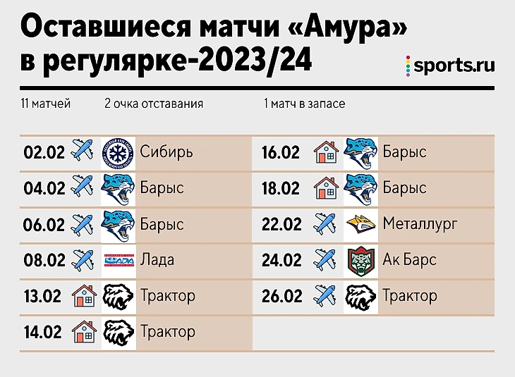 Потому что у «Амура» осталось 11 матчей – и 4 из них как раз с «Барысом». С «Трактором» и «Ладой» тоже можно играть, даже с «Ак Барсом» пободаться по силам, да и с «Магниткой» теперь успешный опыт есть.