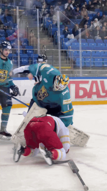 Да такое вообще происходит не каждый год и не в каждой лиге – вратарь подрался с полевым игроком соперника! Все 2225 зрителей «Шайбы» будут внукам об этом рассказывать.