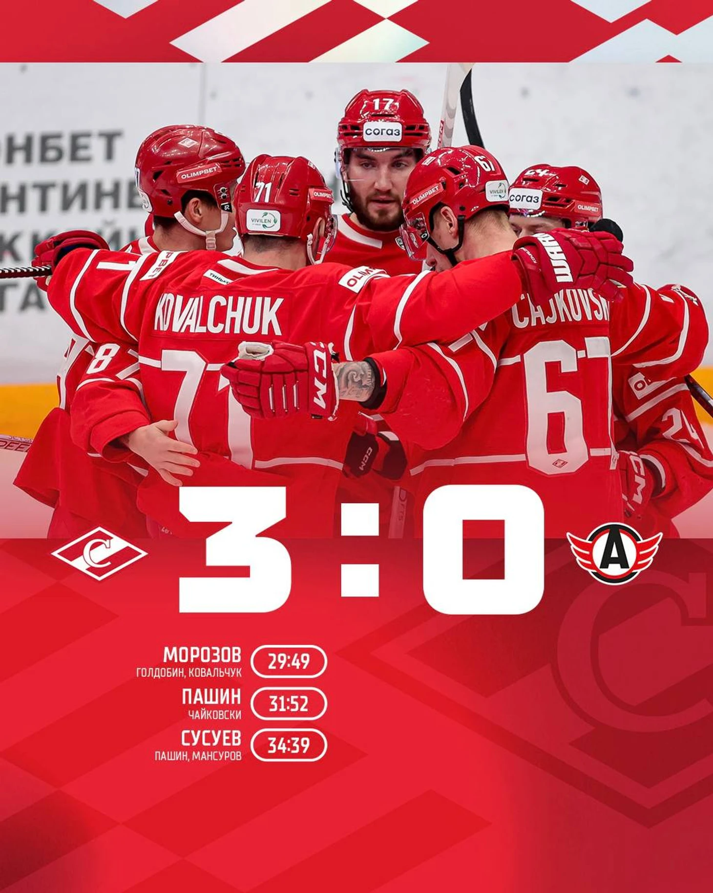 🔥«Спартак» победил «Автомобилист» со счетом 3️⃣:0️⃣ благодаря голам Морозова, Пашина и Сусуева
