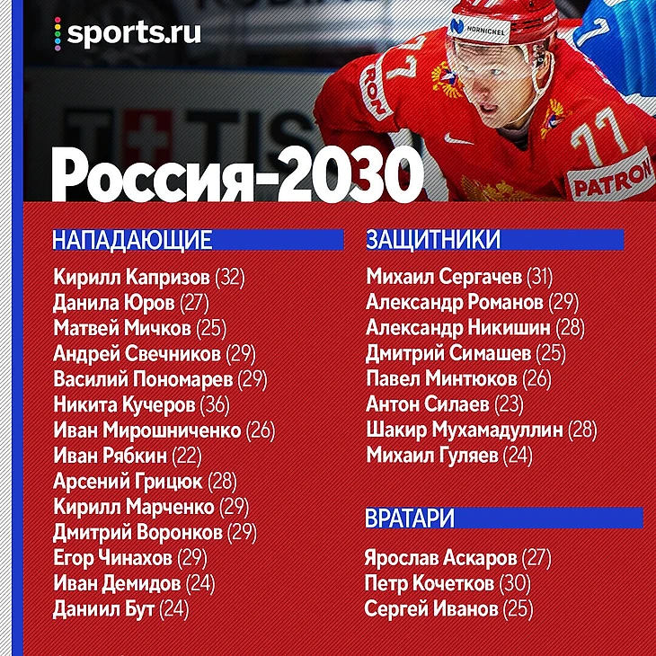 Можем ли мы выиграть Олимпиаду таким составом? Нет, конечно. У канадцев там Макдэвид, Маккиннон и Макар. У американцев Хьюзы, Ткачаки, Мэттьюс и Айкел (да еще и выбор вратарей немногим хуже нашего). Никому из них не будет больше тридцати в 2026-м. Ну это просто нереально. Только это же ничего не меняет.