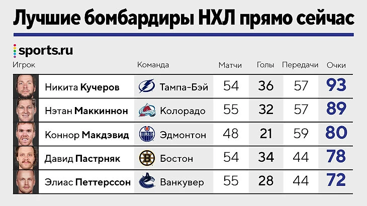 Гонка Кучерова и Маккиннона за «Арт Росс Трофи» должна стать одним из главных украшений оставшейся регулярки НХЛ. Оба игрока уже точно уйдут за сотню, но кто окажется первым и когда нагонит их Макдэвид – дико завораживающие интриги.