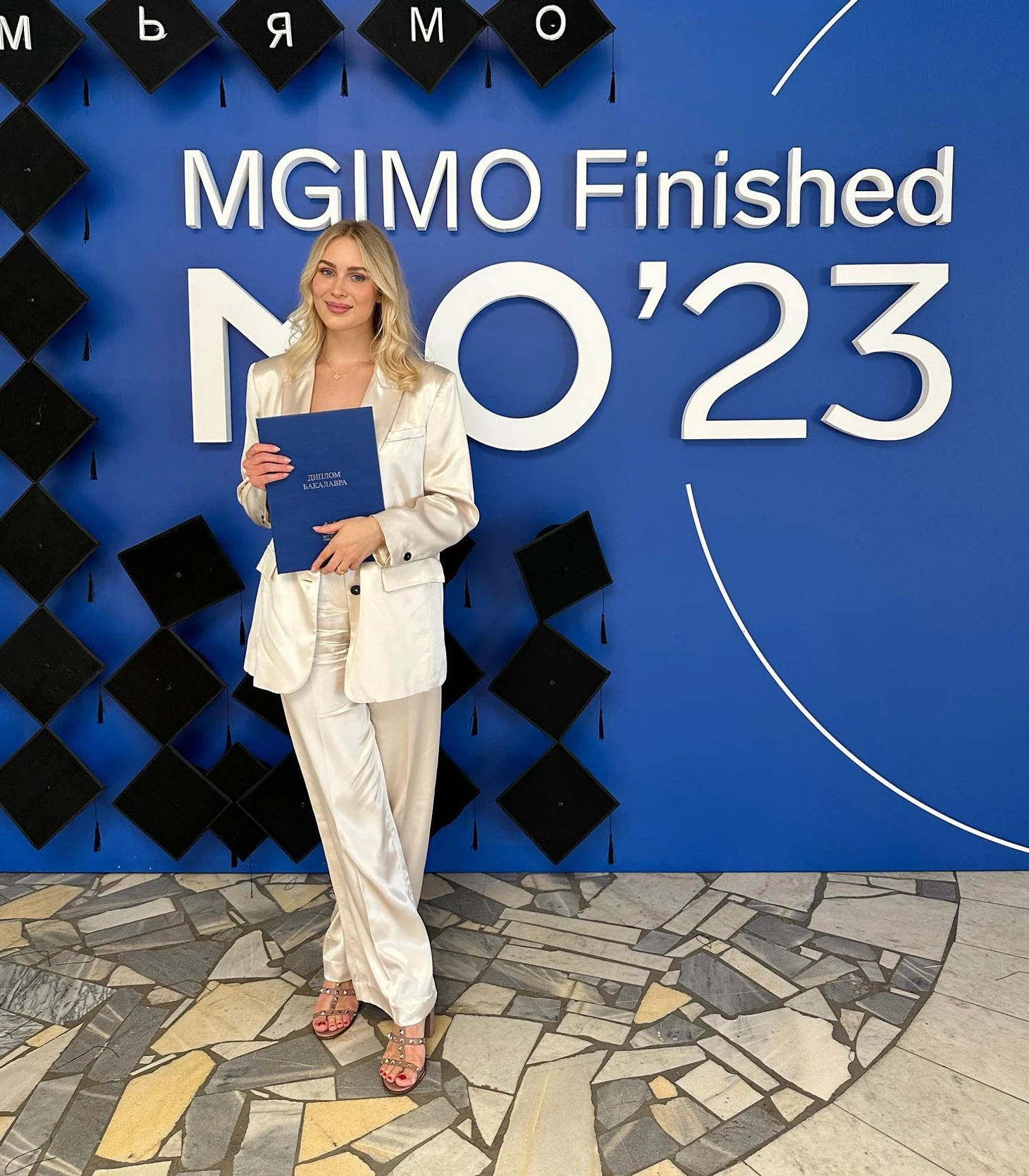 «МГИМО – это поистине замечательное место, которое внесло в мою жизнь огромное количество самых разных красок. Были и слезы, и смех, и радость. Но любовь точно была, есть и будет всегда!» – написала девушка после получения диплома.