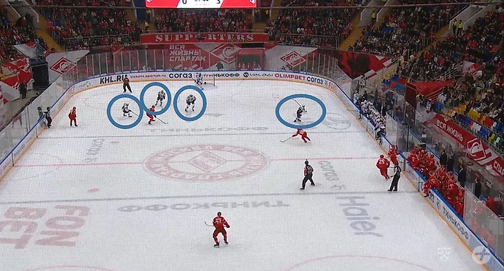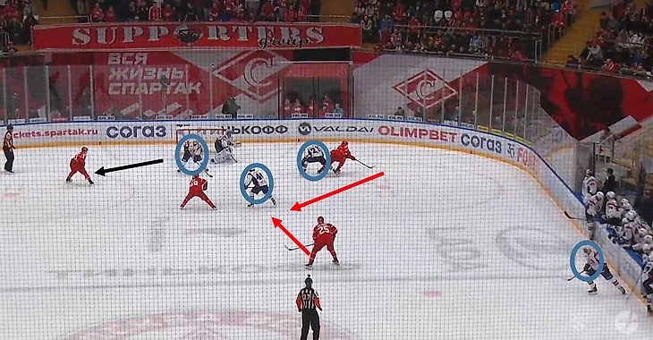 Ансель Галимов выскакивает с скамейки и подключается к атаке на синей линии...