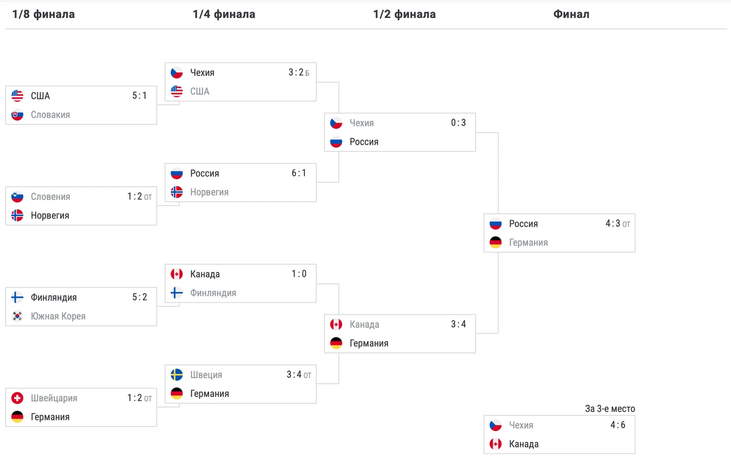 25 февраля 2018 года Сборная России впервые в новейшей истории выиграла золотые медали олимпийского хоккейного турнира. В финале против русских сенсационно сыграли немцы.