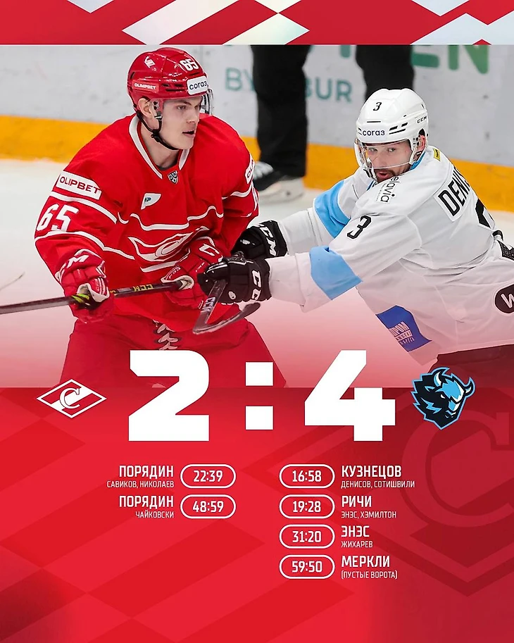 В финальном периоде Павел Порядин оформил дубль (50-я), однако одержать верх "Спартаку" не удалось. Ник Меркли вновь вернул преимущество "зубрам" в два балла (60-я). В результате матч закончился в пользу "Динамо со счетом – 4:2.