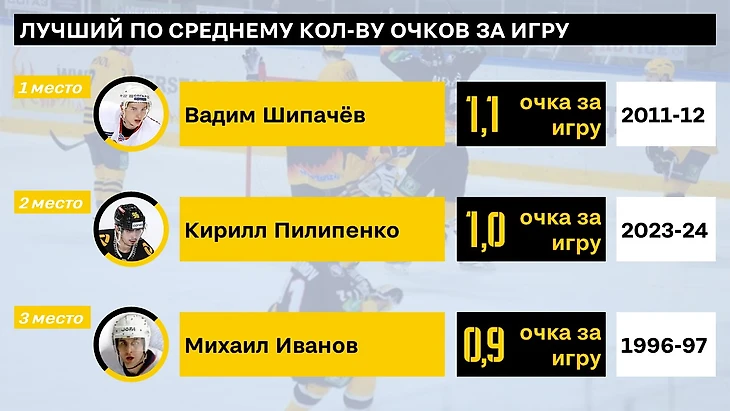 По очкам за матч по итогам 1 сезона сложно превзойти «Вадика» - 1,1 очка за игру в сезоне 11-12 наверняка еще долго будут рекордом. На 3 месте - Михаил Иванов, проведший 1 яркий сезон в команде
