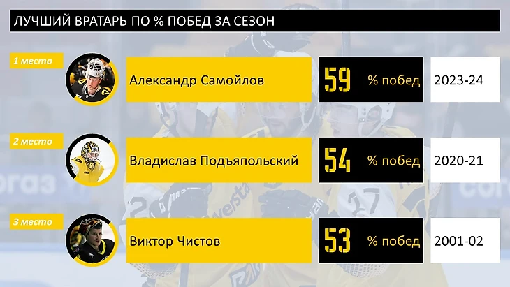 Доля побед в сезоне - очередной павший в этом году рекорд: Александр Самойлов ворвался в КХЛ и в историю клуба.