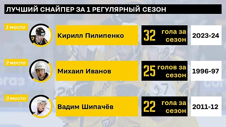 По голам за сезон череповецкий «Мэттьюс» обошел и Шипачева (рекорд в КХЛ) и Иванова (рекорд клуба вообще)