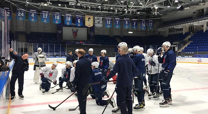 Основная группа занималась на льду ровно час. Команда отрабатывала выходы «два в ноль», «два в один», «три в два», игру в неравных составах и ситуации, при которых потребуется прибегнуть к смене вратаря на шестого полевого, как в динамике игры, так и после вбрасываний в зоне атаки. Чем хороша была тренировка, так это интенсивностью. Между упражнениями не больше двух минут отдыха. Ответственным за объяснения упражнений выступил помощник Игоря Ларионова – Эдуард Занковец.