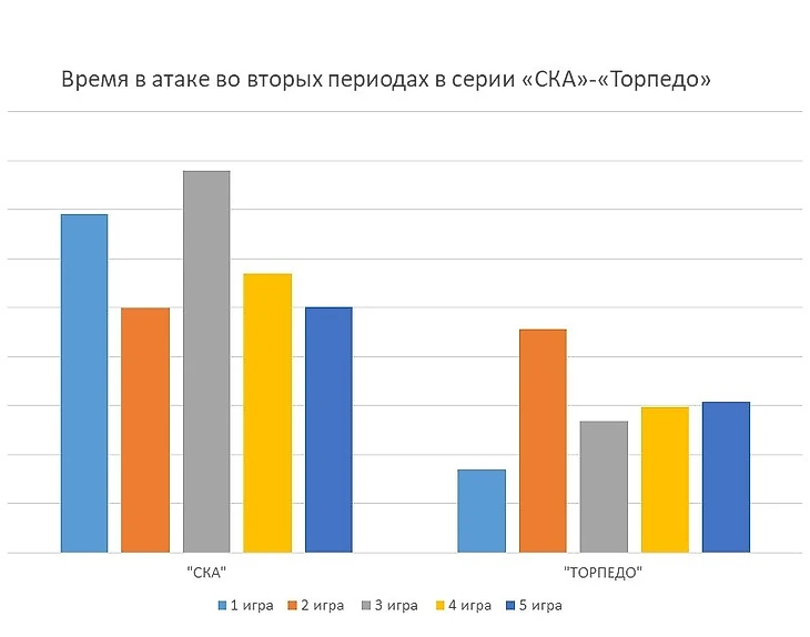 Во второй игре серии командам пришлось провести на льду 1 час 32 минуты. В том матче «СКА» смог сравнять счет, уступая сопернику 0:2, и провести ударный овертайм. В овертайме петербуржцы забрали шайбу себе и практически не отдавали ее сопернику. За первый и второй овертаймы время в атаке «СКА» 13 мин. 19 сек., а у «Торпедо» всего 3 мин. 56 сек. После такого выматывающего матча нижегородцы просто не успели восстановиться и вернуться в прежнюю форму. Это можно увидеть в игровой статистике.