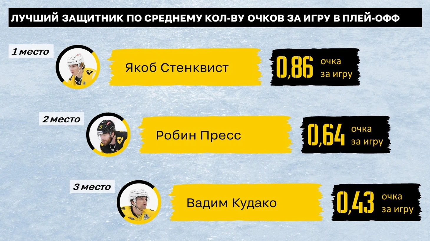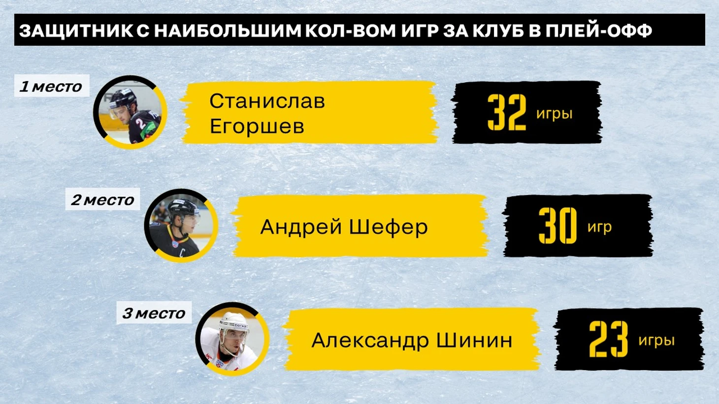 Самым опытным защитником плей-офф оказался Станислав Егоршев - сравнительно незаметный, но стабильный игрок смог обогнать и Шефера и Шинина.