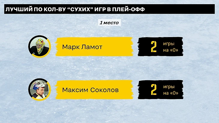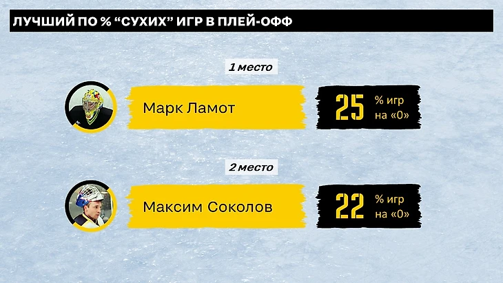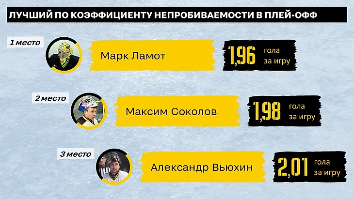 Он же оказался самым непробиваемым - 1,96 гола за игру. Максим Соколов также смог удержаться в пределах двух шайб за игру.