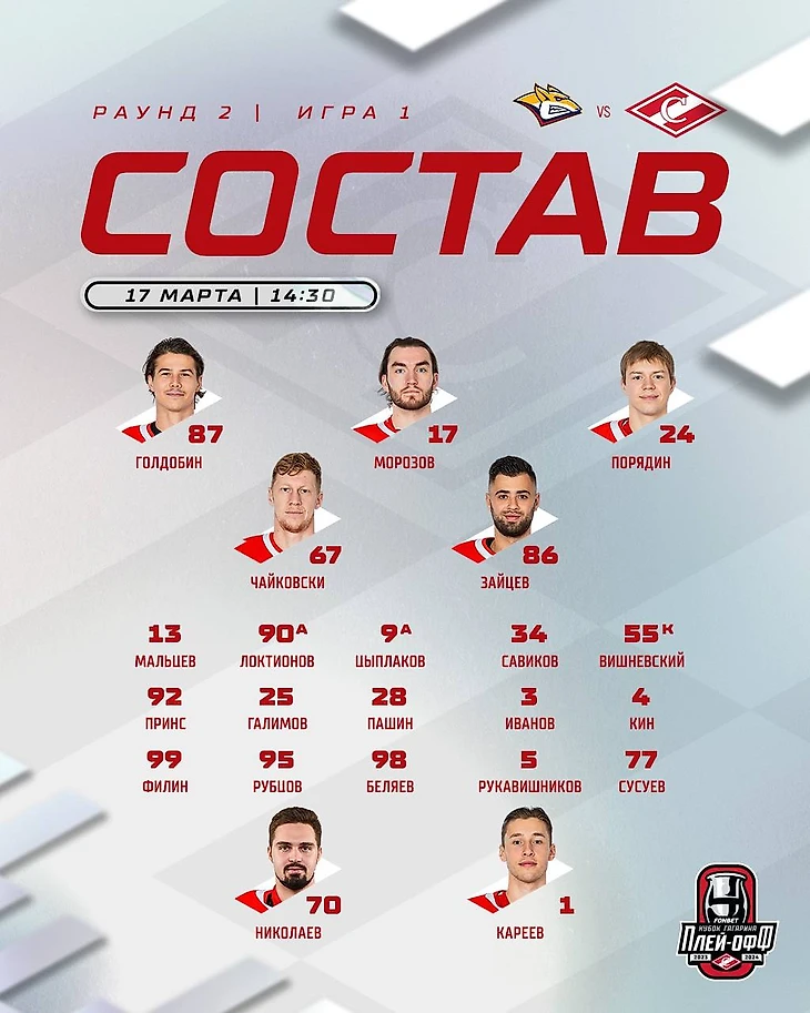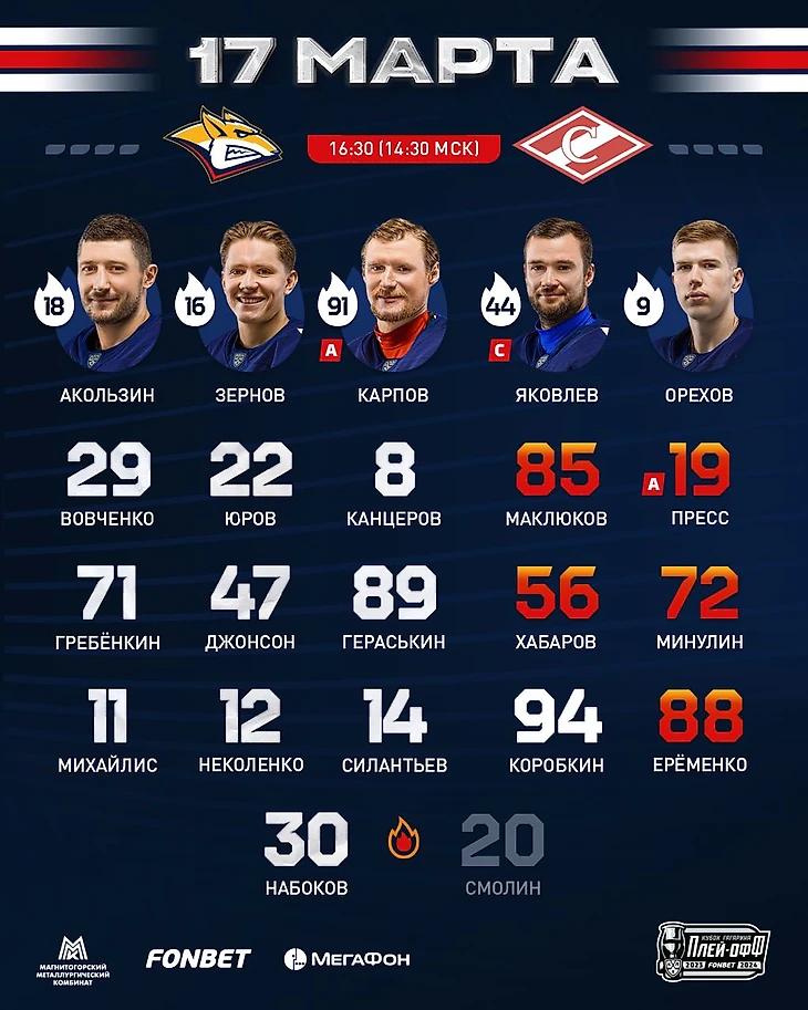 🥅 Николаев в воротах ▲ ▽ Ни одного изменения по сравнению с заключительным матчем с Череповцом. Сочетания звеньев те же.