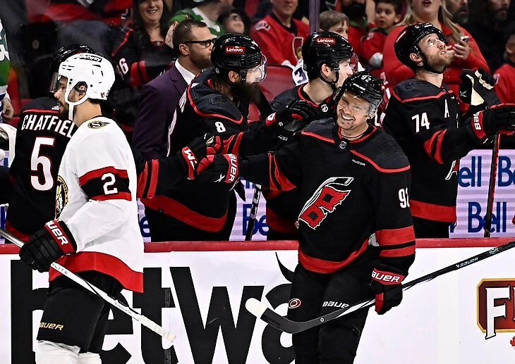 Игру против «Оттавы» Кузнецов целиком провел с двумя молодыми звездами «Харрикейнс», Свечниковым и Нечасом; и даже забил в большинстве.