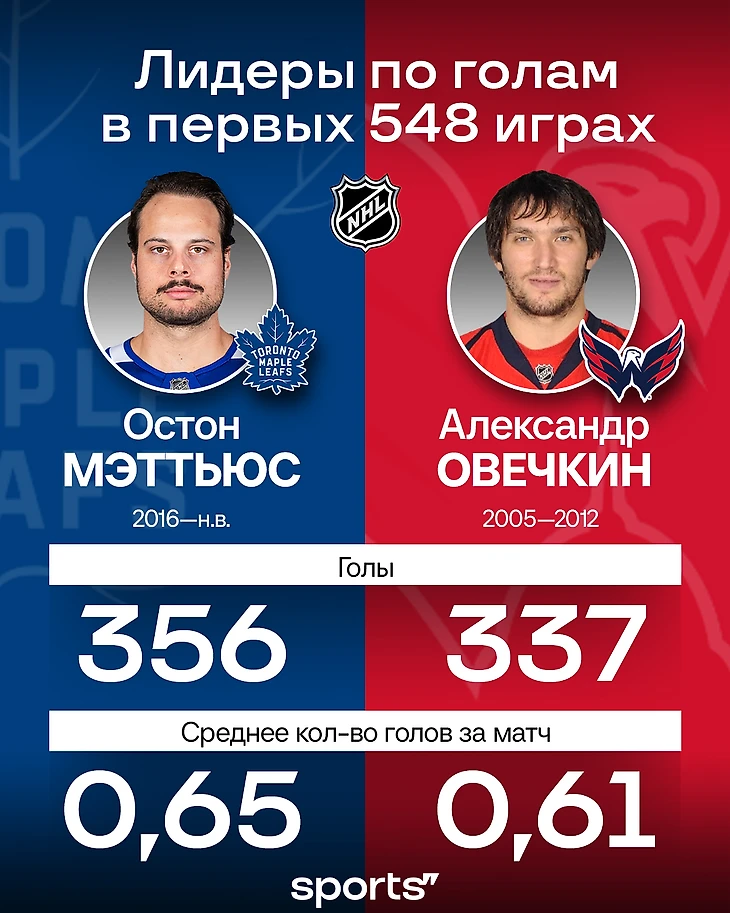 Несмотря на то, что еще не пал рекорд Гретцки, в НХЛ уже нашли хоккеиста, который будет гнаться за рекордом Овечкина – Остон Мэттьюс. Перед игрой с «Вашингтоном» у американца было 55 шайб – он с отрывом лидер среди снайперов.