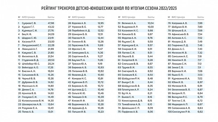 – В рейтинг лучших тренеров детско-юношеских школ КХЛ вы не попали. Рассчитывали увидеть себя там? Вы ведь привели СКА 1999 года к чемпионству России.