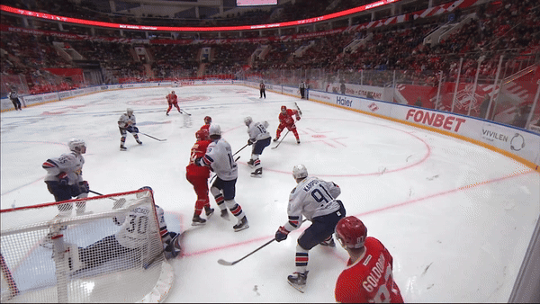 «Нестопроцентный» момент появился на 47-й минуте. Иван Морозов в борьбе ткнул шайбу в сторону ворот гостей. В створ она не попала, зато ее принял Голдобин, выехал из-за ворот и снова вывел команду вперед. Этот гол и стал победным.