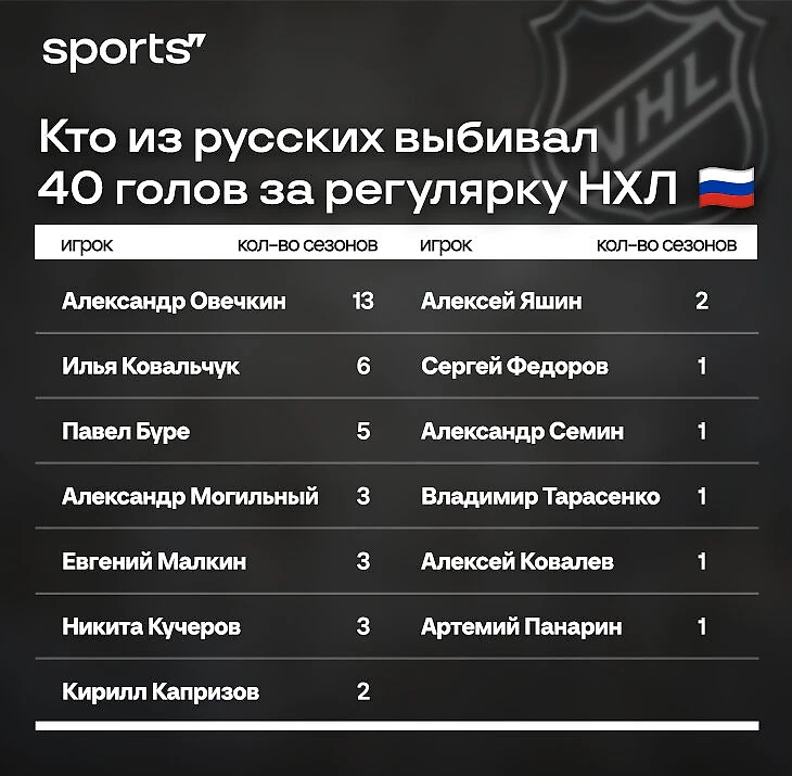 Своим вторым голом Панарин наконец-то выбил 40 голов за регулярку – за 9 сезонов в НХЛ эта цифра покорилась ему первый раз. Лучшим результатом до этого были 32 шайбы в первом сезоне за Нью-Йорк. К слову, не так уж и много русских игроков дотягивались до такой планки. Артемий – 13-й в списке: