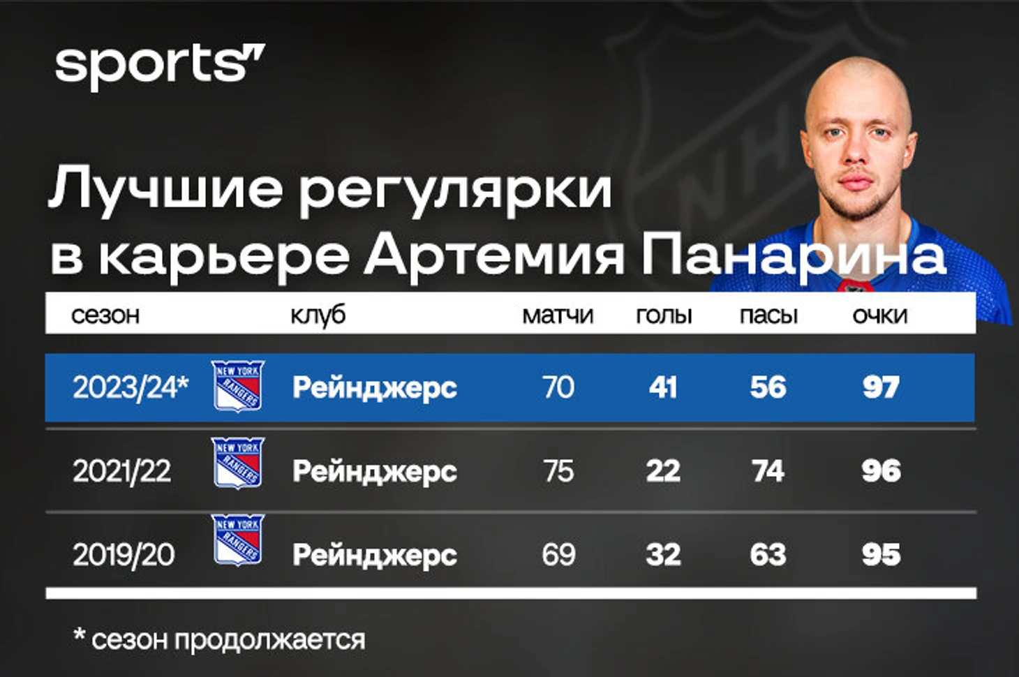 Панарин – первый игрок «Рейнджерс» после Яромира Ягра (2005/06), который забил более 40 голов и сделал более 50 результативных передач за один сезон.