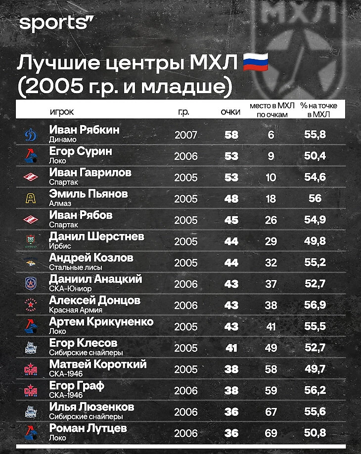 Тут самое интересное в том, что лучший из центров 2005 года и моложе – 16-летний дебютант Иван Рябкин из «Динамо».