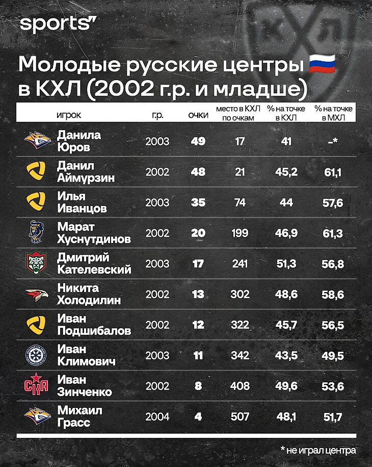 Дело тут не в лимите, а в событиях, которые начались в феврале 2022-го. Именно в прошлом сезоне, еще при лимите в пять иностранцев, был большой прирост молодых, постоянно играющих в основе. В этом сезоне их стало чуть поменьше (19 центров 21 года и младше с 30+ матчей за сезон год назад против 14 сейчас). Но есть интересные ребята.
