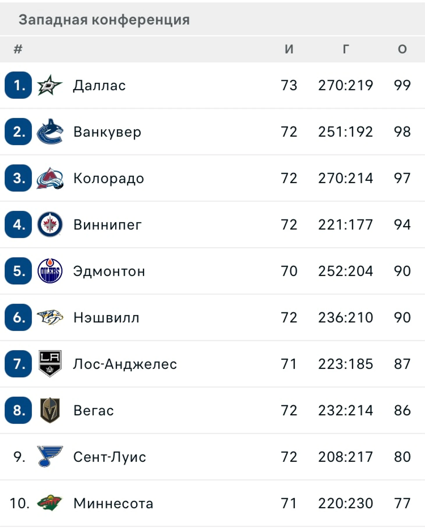 До конца регулярки командам Национальной Хоккейной Лиги осталось провести 10 матчей (плюс-минус еще один).